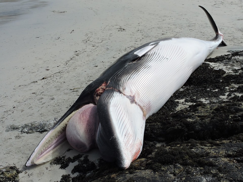 Two weeks later a juvenile minke whale (Balaenoptera acutorostrata) was reported, this time off the coast of Iona in the Inner Hebrides. The animal was discovered dead at sea entangled in creel lines which were anchoring it to the seabed.