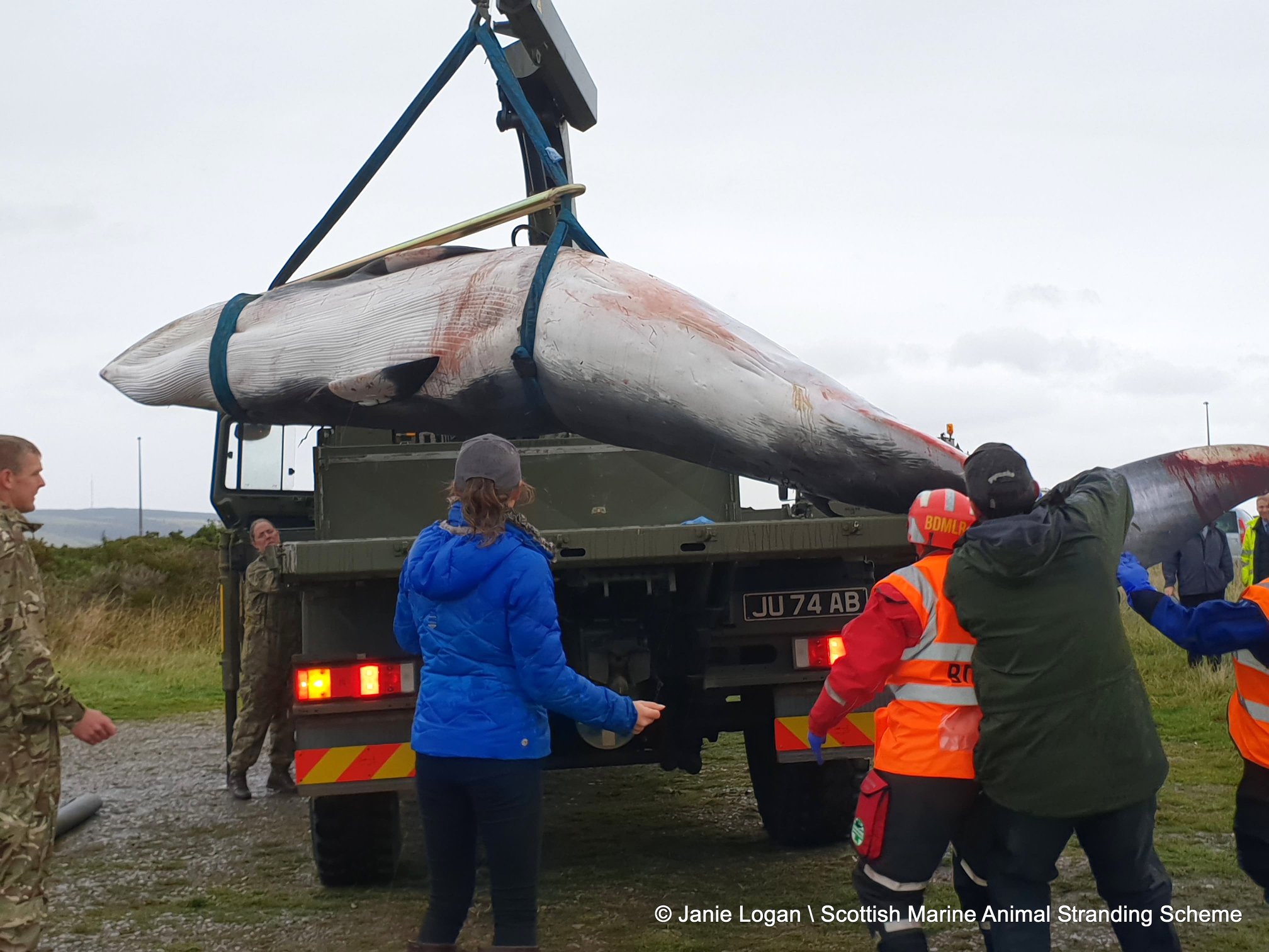 We would like to thank all involved in both the response to the live stranding of this animal and subsequent recovery of the carcase; including British Divers Marine Life Rescue, HM Coastguard – Highland, the Fort George 3rd Battalion Royal Regiment of Scotland, as well as the local farmer who moved the carcase, Highland Council, and all the locals who came by to lend a hand. It was a great multi-organisational team effort and we really could not have done this without you!