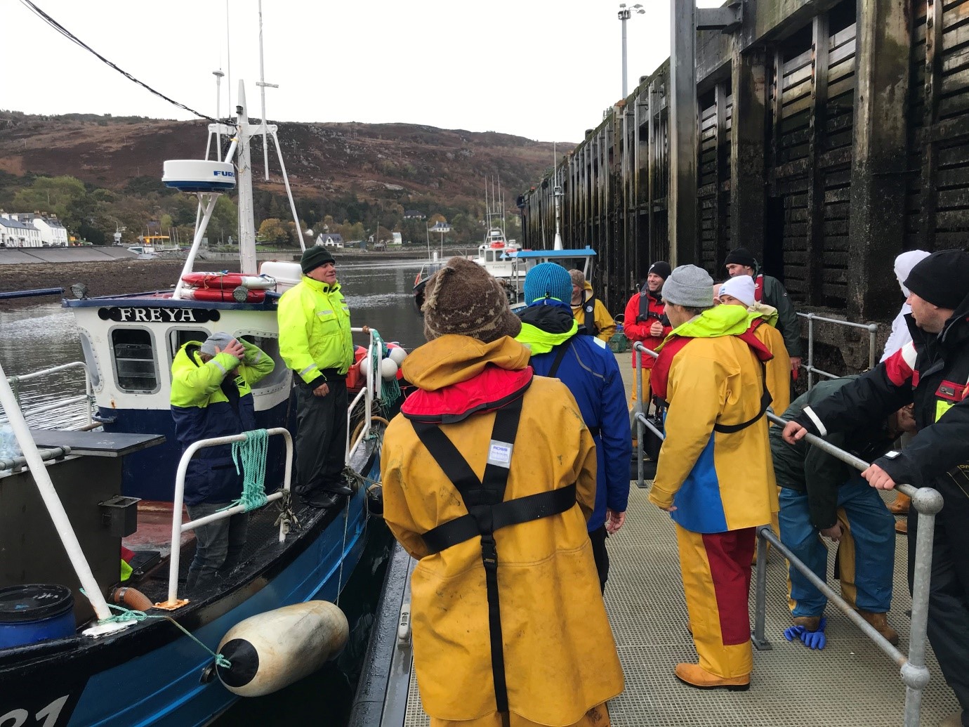 David Mattila briefing fishermen on a variety of on-water disentanglement scenarios before heading out to sea. Image credit: Scottish Entanglement Alliance (SEA) 2019.