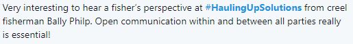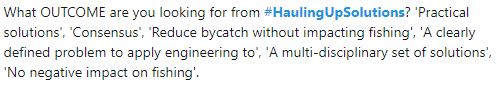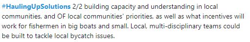 Below are some just some of the tweets about the workshop which highlight some of the challenges and goals in marine animal bycatch and entanglement monitoring and mitigation. Follow the hashtag #HaulingUpSolutions to read more.