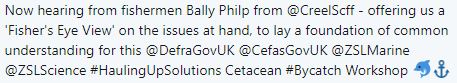 Last week myself and five creel fishermen from Scotland were invited to attend ‘Hauling up Solutions’, a two-day cetacean bycatch and entanglement workshop hosted by Cefas and Defra at the Zoological Society of London. Seven net fishermen from Cornwall, as well as a host of scientists and researchers, government representatives and tech developers (some of whom previously worked as fishermen) were also in attendance. The objectives of the workshop were to:
