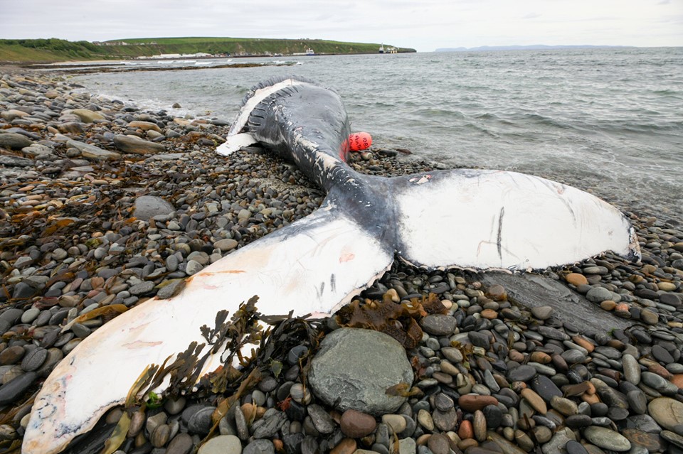 The young humpback whale washed ashore on Scrabster beach. Image credits: Gavin Bird