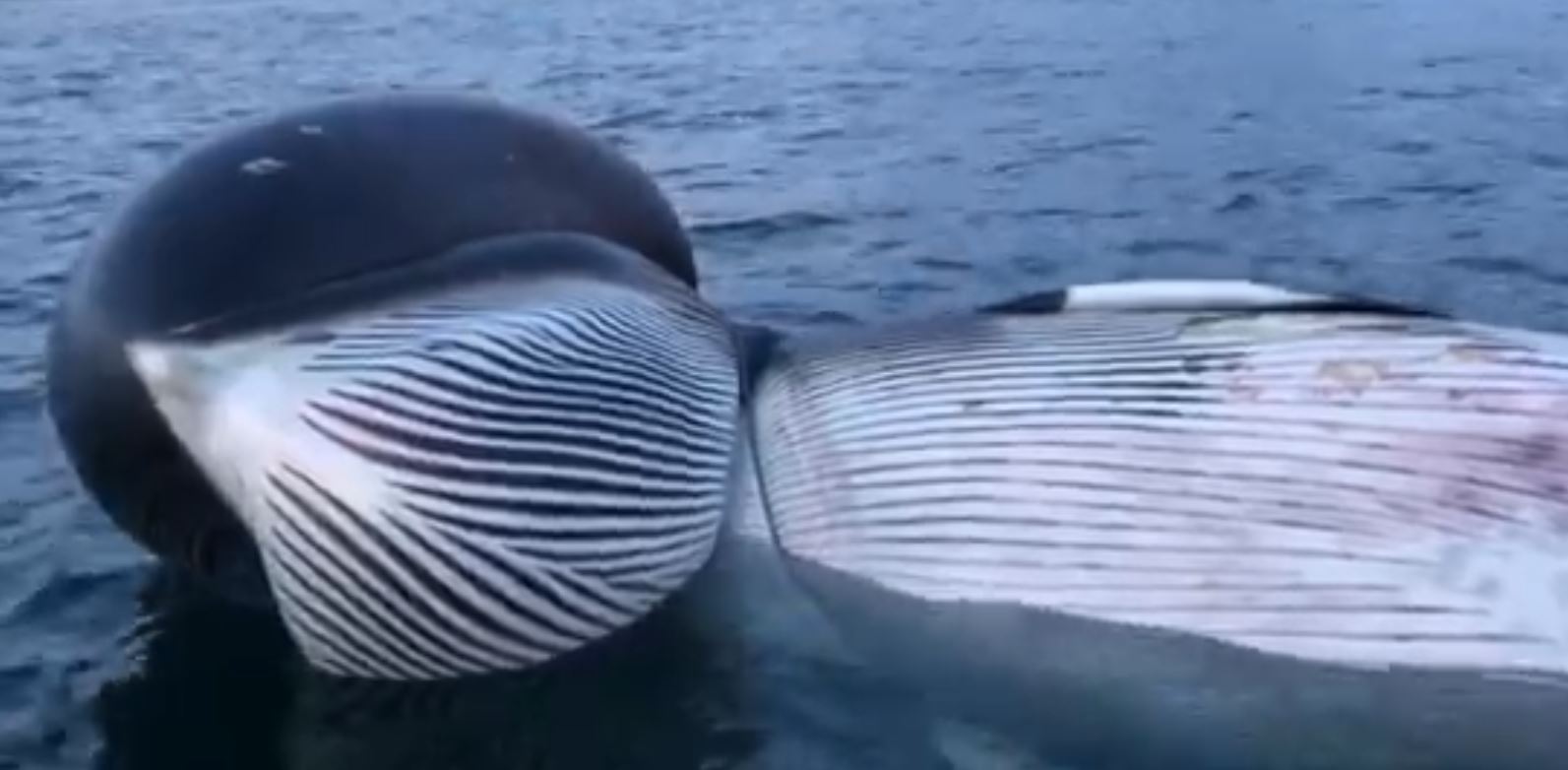 The young minke whale spotted at sea, entangled around the head and mouth. Image credits: Hannah Elizabeth Fisher